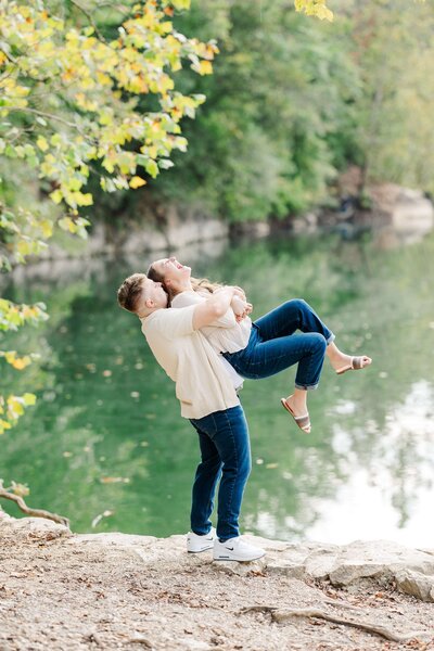 This is always what I recommend when couples tell me they want to have some water in the background. This location sits right along Melton Hill Lake and is so beautiful. The best part about this water view is we can be down by the water and get the view of you guys standing right on the river's edge, but we can also walk up the hill and get the grand, vast view of the river curving back behind you!